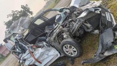 ब्रेकिंग! कंटेनरने धडक दिल्याने स्विफ्ट कारचा चक्काचूर