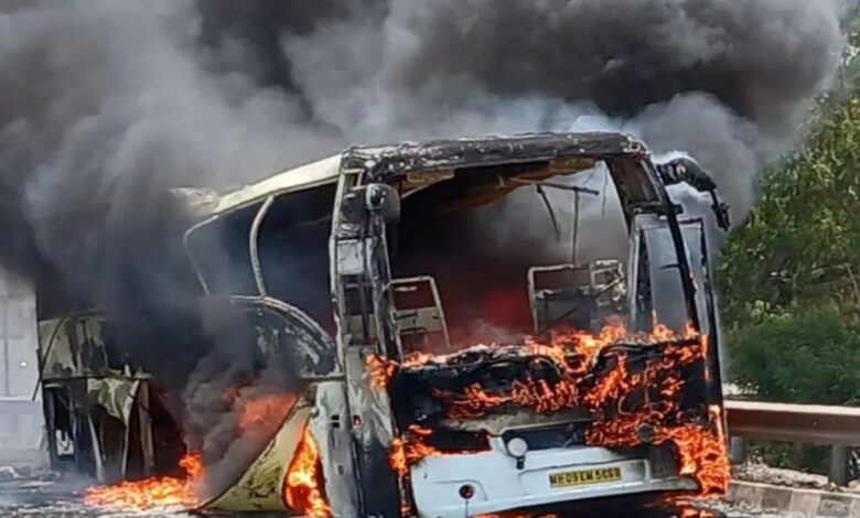 - मात्र आगीने क्षणार्धात उग्र स्वरूप धारण केले. काही वेळातच संपूर्ण बस या आगीत जळून खाक झाली. या घटनेची माहिती मिळताच राष्ट्रीय महामार्ग प्राधिकरणाचे पेट्रोलिंग पथक ताबडतोब घटनास्थळी दाखल होऊन त्यांनी वाहतुकीचे नियंत्रण केले.