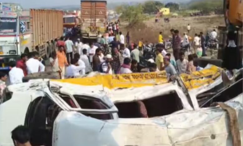 • सोलापूर पुणे महामार्गावर ट्रक आणि बाईकचा आधी अपघात झाला. त्यानंतर ट्रकने रॉंग साईडने जाऊन मिनी बसला जोराची धडक दिली. ट्रकची मिनी बसला जोराची धडक बसल्यामुळे मिनी बस जागेवर पलटी झाली. या अपघातात तुळजापूर देवदर्शनाला जाणाऱ्या भाविक ठार झाले आहेत तर पंधरा जण जखमी झाले आहेत. दरम्यान या अपघातात बाईकस्वार दयानंद भोसले, मिनी बस चालक लक्ष्मण पवार आणि आणखी एका व्यक्तीचा जागीच मृत्यू झाला. दरम्यान कंटेनर चालकाच्या विरोधात गुन्हा दाखल करण्यात आला आहे.