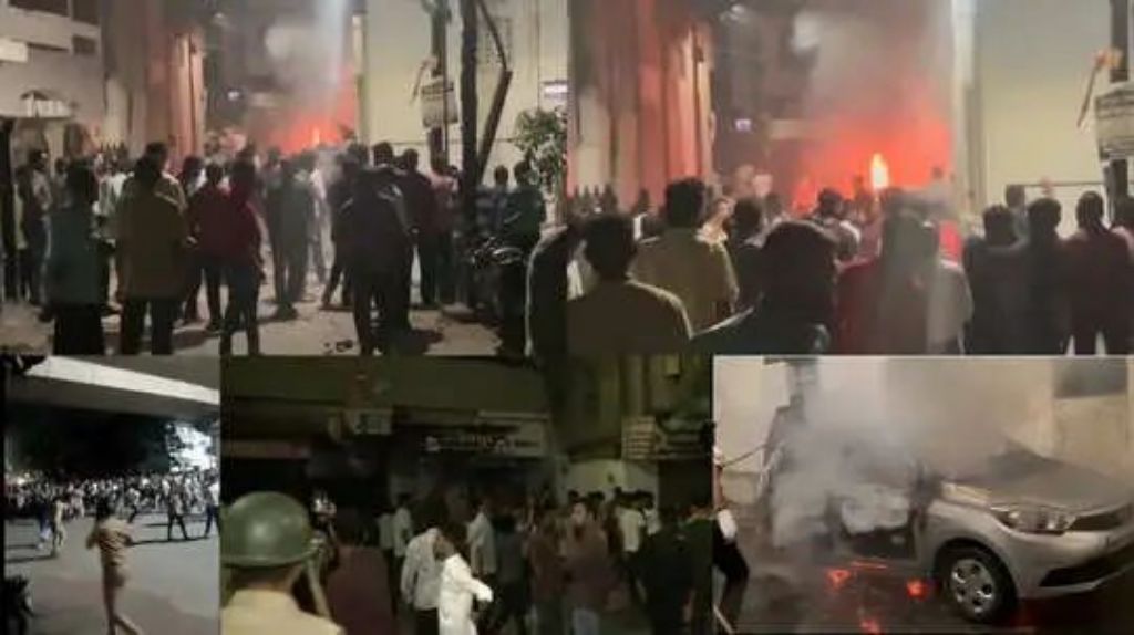 घटनास्थळी प्रचंड तणावाचे वातावरण आहे. रस्त्यावर पोलीस गर्दी नियंत्रित करत आहे. त्यादिशेने जोरदार दगडफेक होत आहे. पोलीस तरूणांना थांबवत आहे. अश्रुधुराच्या नळकांड्या फोडल्या जात आहेत. अग्निशमन दलाची गाडी देखील घटनास्थळी पोहोचली आहे. समोरच्या दिशेने मोठ्या प्रमाणावर दगडफेक होत आहे. आक्रमक तरूणांनी वाहनांची जाळपोळ मोठ्या प्रमाणावर केली.