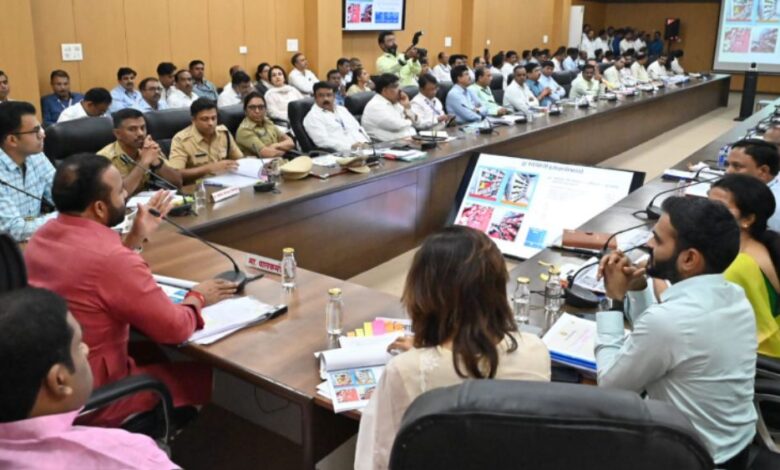 • नियोजन समिती सभागृहात आयोजित विविध विभागाच्या आढावा बैठकीत पालकमंत्री जयकुमार गोरे मार्गदर्शन करत होते. यावेळी आमदार समाधान आवताडे, आमदार देवेंद्र कोठे, आमदार राजू खरे, प्रभारी जिल्हाधिकारी तथा अपर जिल्हाधिकारी मोनिका सिंह ठाकुर, महापालिका आयुक्त सचिन ओंबासे, मुख्य कार्यकारी अधिकारी कुलदीप जंगम, पोलिस शहर आयुक्त एम. राजकुमार, पोलीस अधिक्षक अतुल कुलकर्णी, निवासी उपजिल्हाधिकारी मनीषा कुंभार, उपजिल्हाधिकारी महसूल अमृत नाटेकर, जिल्हा नियोजन अधिकारी दिलीप पवार, पोलीस शहर उपायुक्त दिपाली काळे, अतिरिक्त मुख्य कार्यकारी अधिकारी संदीप कोहिनकर,जलसंपदा विभागाचे अधीक्षक अभियंता धीरज साळे, महावितरण चे अधीक्षक अभियंता सुनील माने, मनपाचे अतिरिक्त आयुक्त रवी पवार, जिल्हा अधीक्षक भूमी अभिलेख दादासाहेब घोडके, जिल्हा मृद व जलसंधारण अधिकारी दयासागर दामा यांच्या सह सर्व संबंधित अधिकारी उपस्थित होते.
